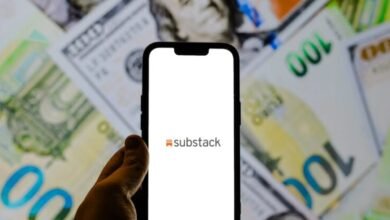 An iPhone with the Substack app is held in front of bills of money in various currencies. Picture: Photo For…